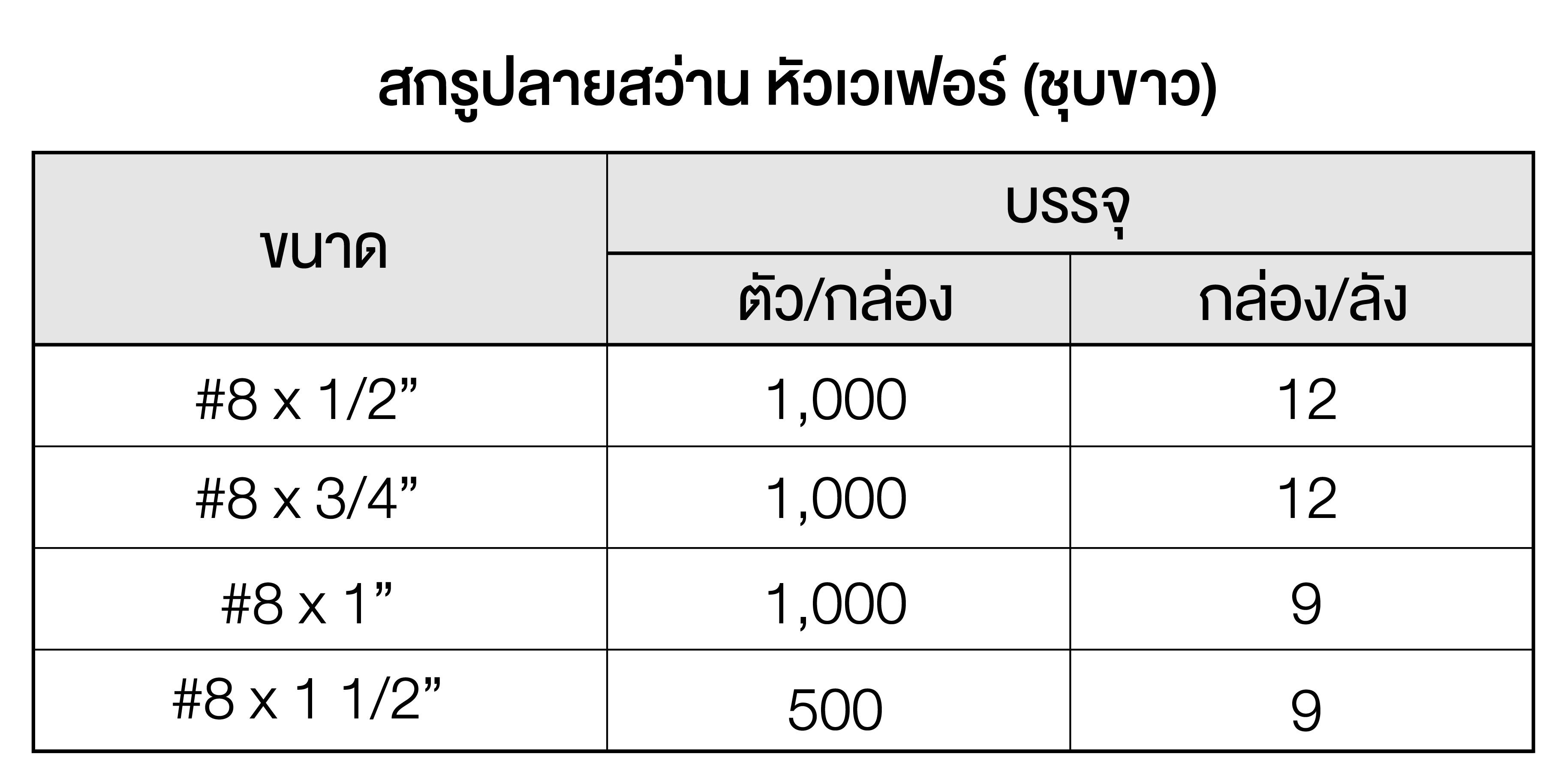 ตาราง สกรูปลายสว่านหัวเวเฟอร์ (ชุบขาว)